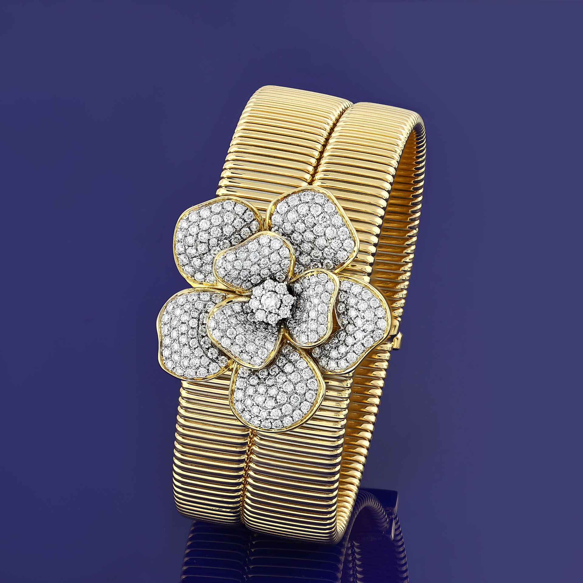 Reflecting the signature spirit of the Maison, La Rosina bracelets are a tribute to everlasting beauty. Made from 18k white, yellow, or rose gold, they belong to the bracelet category and feature softly sculpted floral designs, created to wrap the wrist in symbolic sophistication.