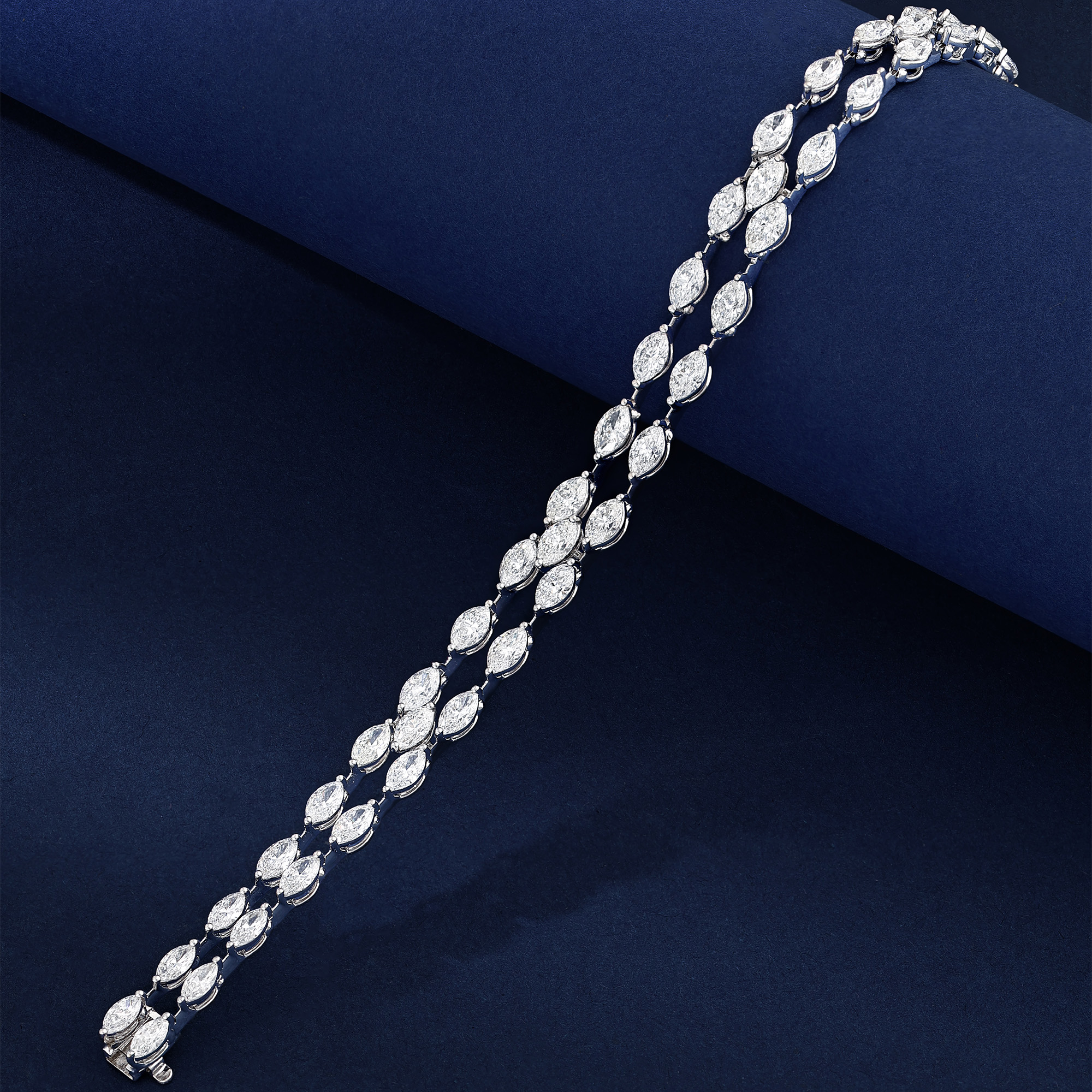 Diamond bracelets are handcrafted with continuous white diamond settings articulated in fluid gold constructions. These high jewellery diamond bracelets emphasize balance, movement, and controlled brilliance on the wrist.