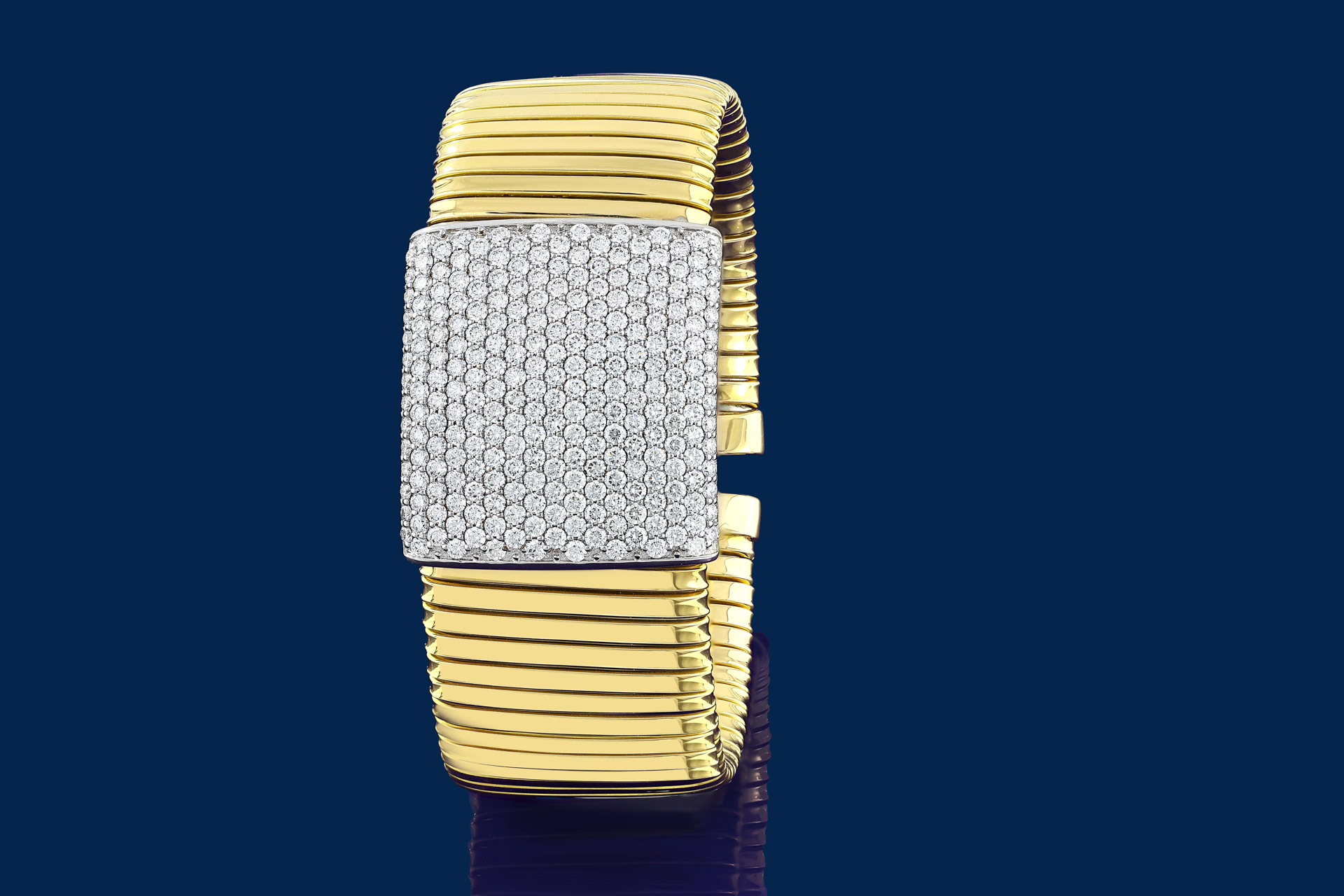 Crafted in tubogas gold and adorned with diamonds, Via Toledo bracelets are conceived to move freely on the wrist. Their flexible construction mirrors the continuous flow and layered character of the avenue that inspires the collection. Il Bernardo’s artisanal execution transforms this movement into a controlled and enduring jewel for the wrist.