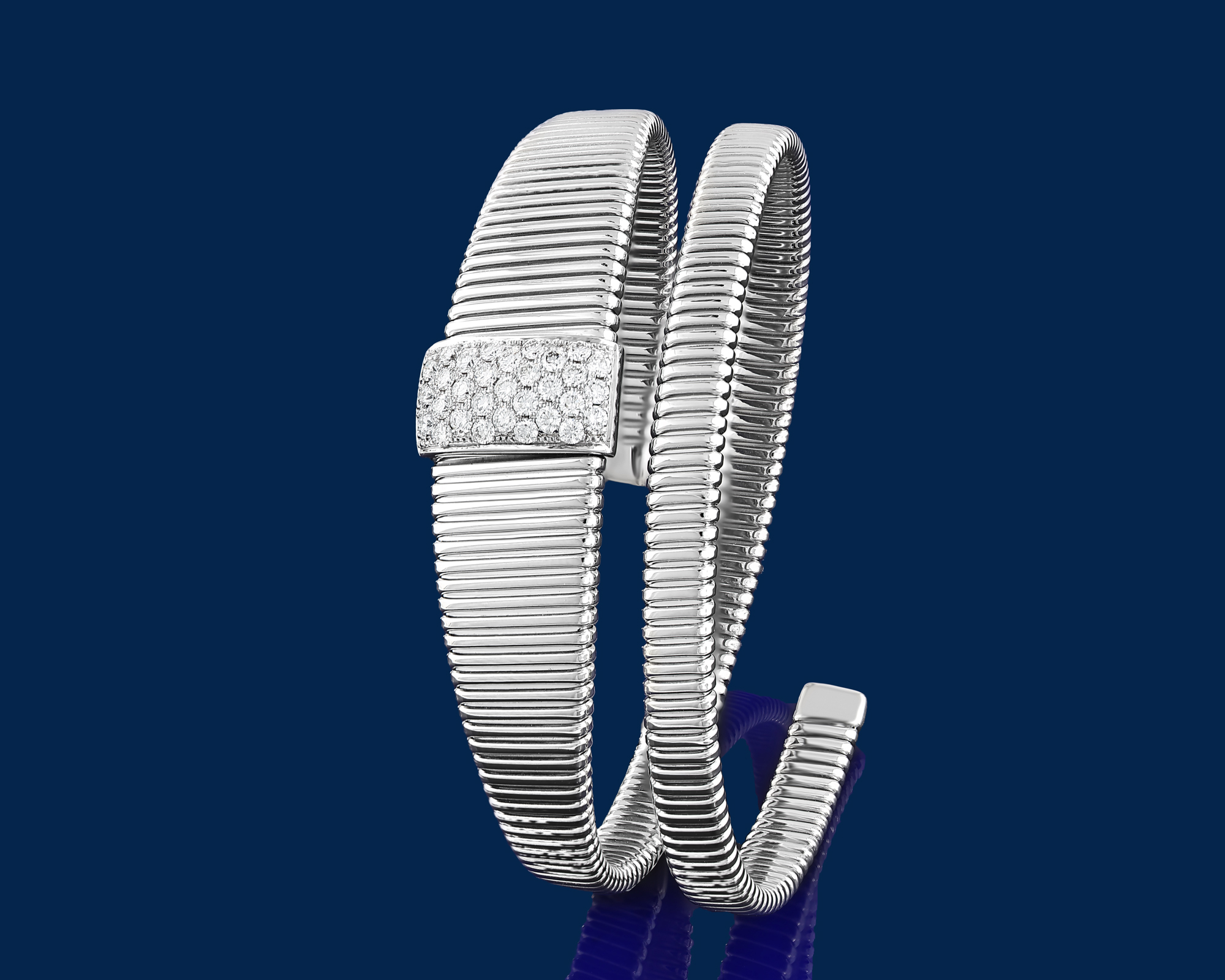 Crafted in tubogas gold and adorned with diamonds, Via Toledo bracelets are conceived to move freely on the wrist. Their flexible construction mirrors the continuous flow and layered character of the avenue that inspires the collection. Il Bernardo’s artisanal execution transforms this movement into a controlled and enduring jewel for the wrist.