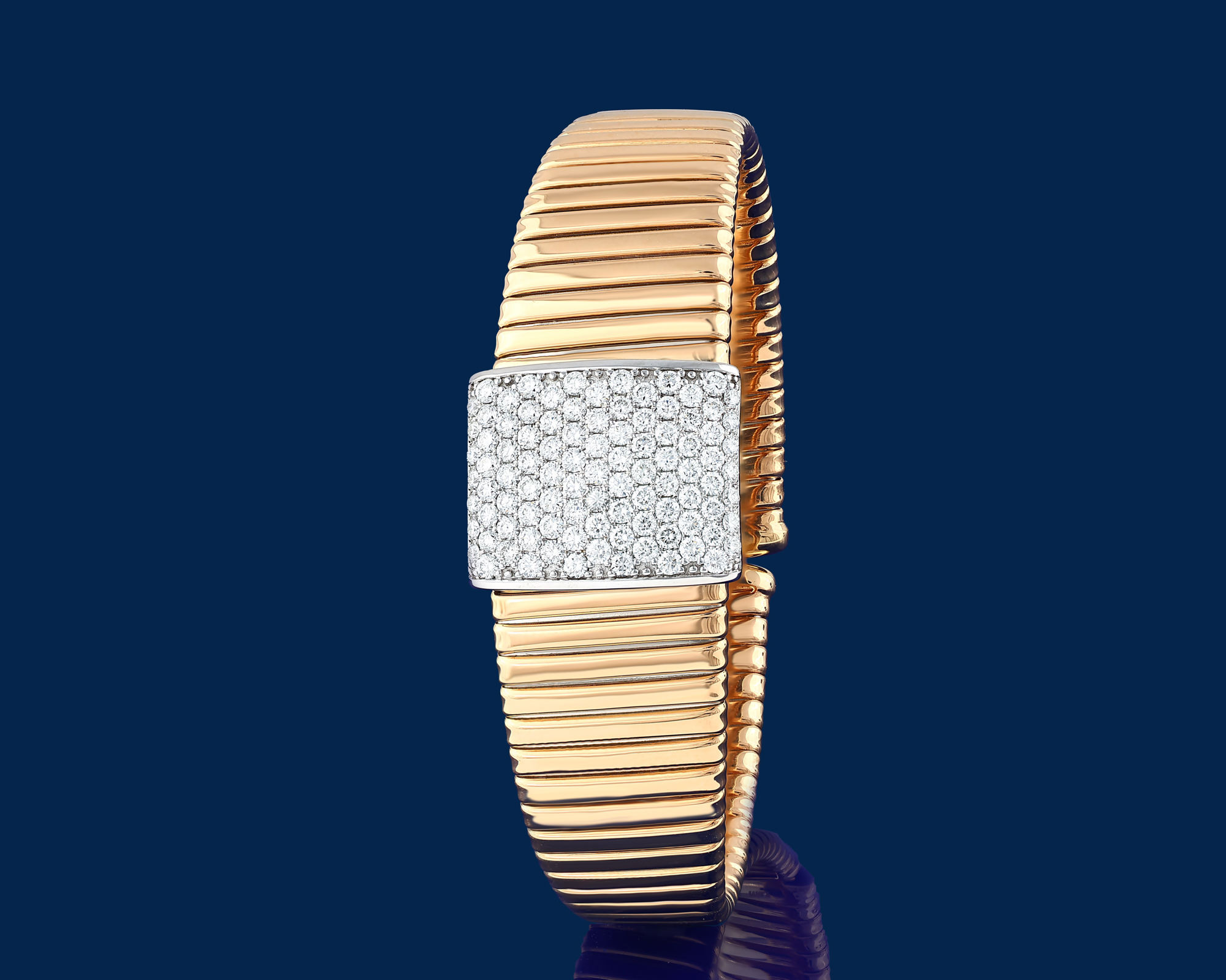 Crafted in tubogas gold and adorned with diamonds, Via Toledo bracelets are conceived to move freely on the wrist. Their flexible construction mirrors the continuous flow and layered character of the avenue that inspires the collection. Il Bernardo’s artisanal execution transforms this movement into a controlled and enduring jewel for the wrist.