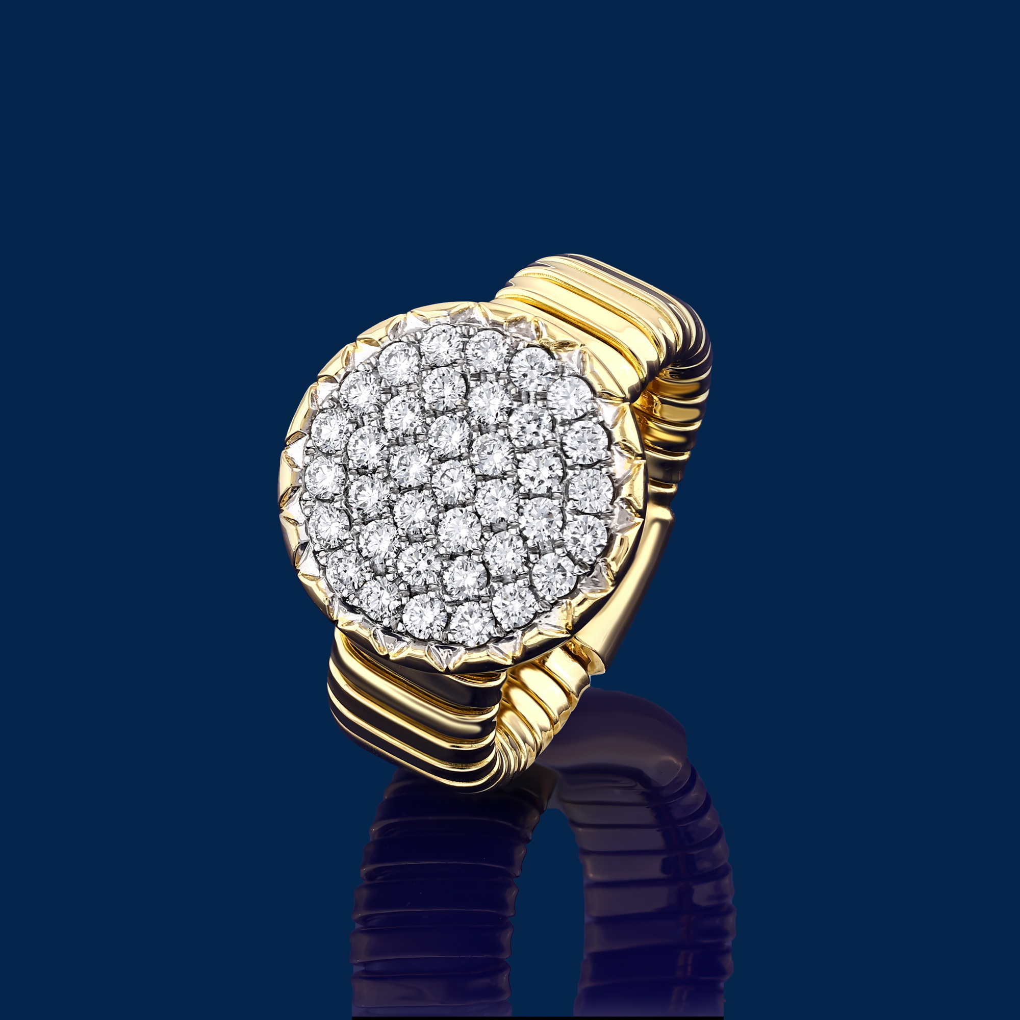 Via Toledo rings are sculpted in tubogas gold and accented with diamonds, designed to sit with strength and structure on the hand. Geometric silhouettes and dynamic contours create a sense of motion captured within solid form. Each ring reflects Il Bernardo’s craftsmanship, where architectural rhythm is translated into a powerful statement worn on the finger.