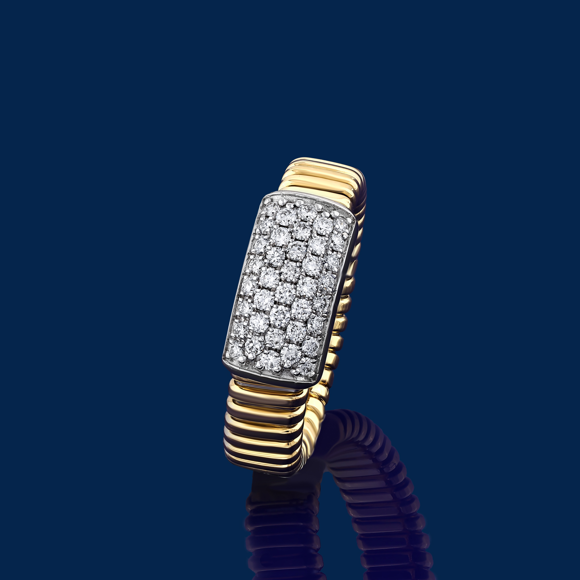 Via Toledo rings are sculpted in tubogas gold and accented with diamonds, designed to sit with strength and structure on the hand. Geometric silhouettes and dynamic contours create a sense of motion captured within solid form. Each ring reflects Il Bernardo’s craftsmanship, where architectural rhythm is translated into a powerful statement worn on the finger.